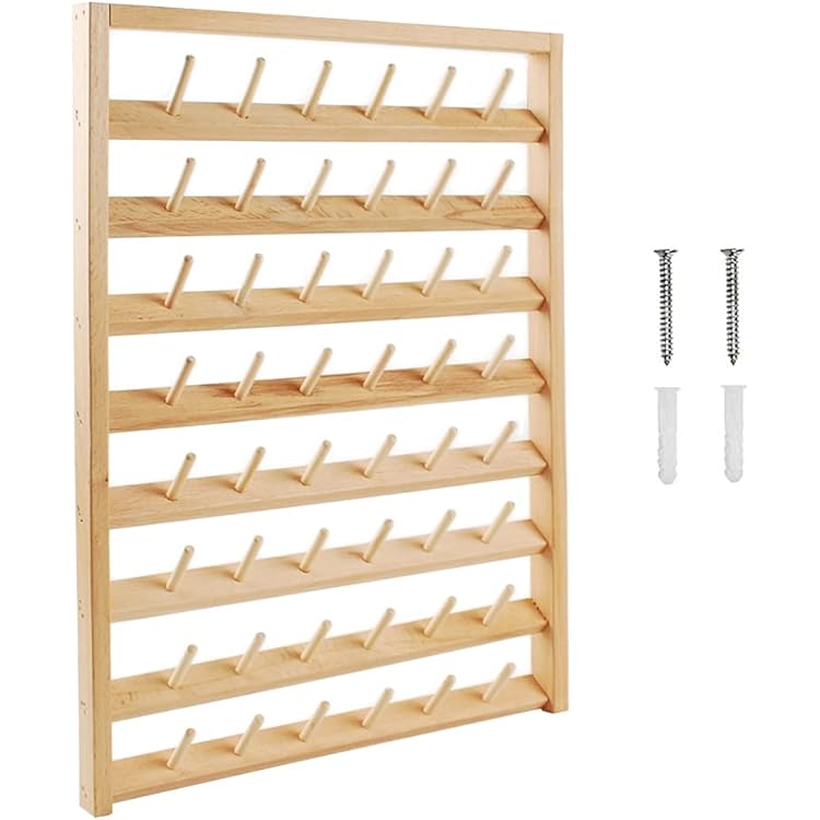 Amazon Com Haitral 48 Spool Sewing Thread Rack Wall Mounted Sewing Thead Holder With Hanging Hooks Wooden Organize For Mini Sewing Quilting Jewelry Embroidery